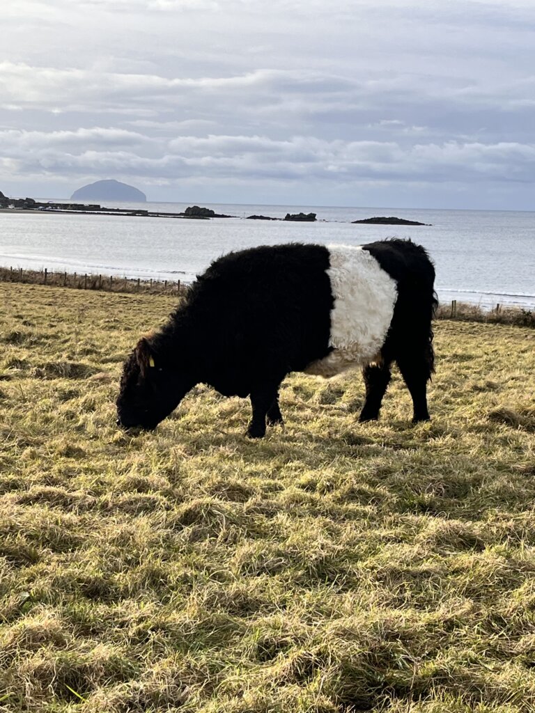 Above the blasted beach, a lone outrider of a Galloway cattle herd. They’re not nicknamed Belties for nothing.