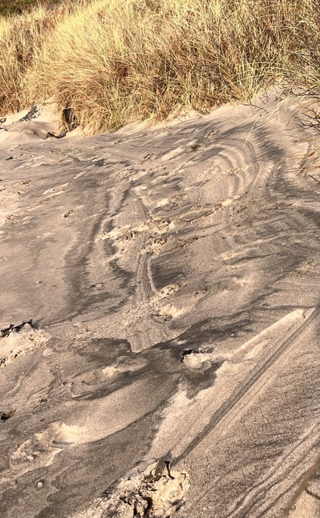 That stretch has disappeared. But it will return. It always does. Today, its remnants have been bullied by the charmingly named Storm Goretti up towards the wild grass, streaked by mineral deposits: