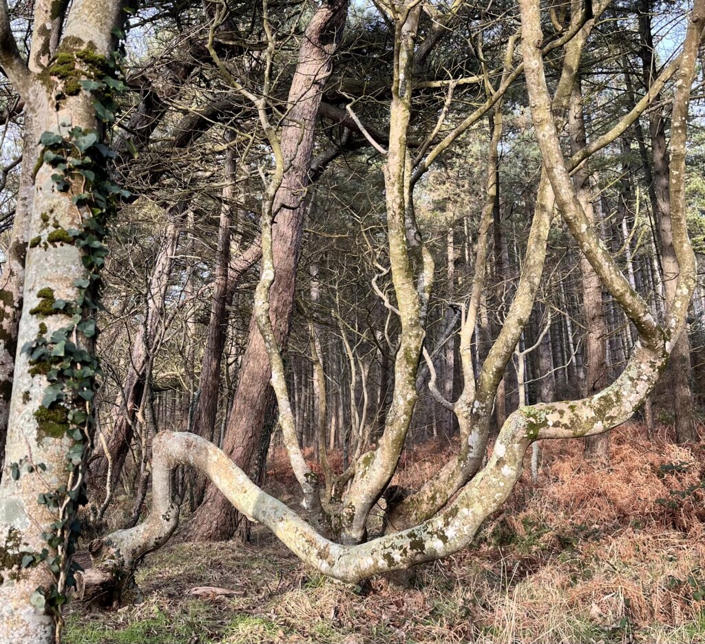 Some of the trees, mainly hardwoods, are twisted by gales that roar in from Ireland: